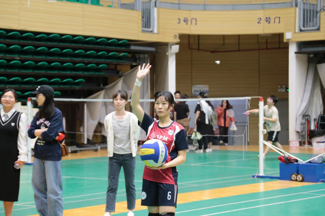 11月8日晚19:00,“君武杯”研究生气排球赛八进四淘汰赛公管学院vs农学院的比赛,在西体育馆7号场进行。辅导员刘佩瑶老师及学院众多同学自发组成啦啦队为场上队员加油。赛前,队员们进行了战术布置与充分的热身。随着一声哨响,激动人心的比赛正式开始,场外的呐喊助威使得比赛更加精彩绝伦。