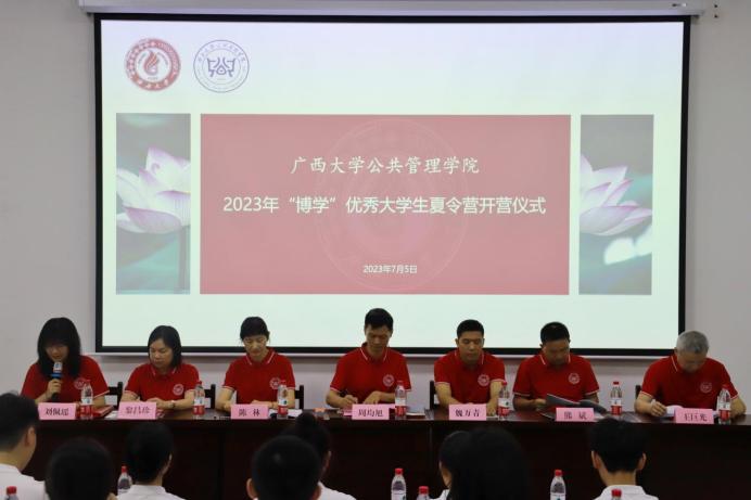 7月5日上午,太阳集团tyc138,ok138太阳集团古天乐2023年优秀大学生“博学”夏令营正式拉开帷幕。学院副院长周均旭、副院长魏万青、副院长陈林、MPA教育中心副主任熊斌、公共管理系黎昌珍教授和王巨光教授出席了本次开营仪式。此次夏令营以“线上+线下”的形式开展。