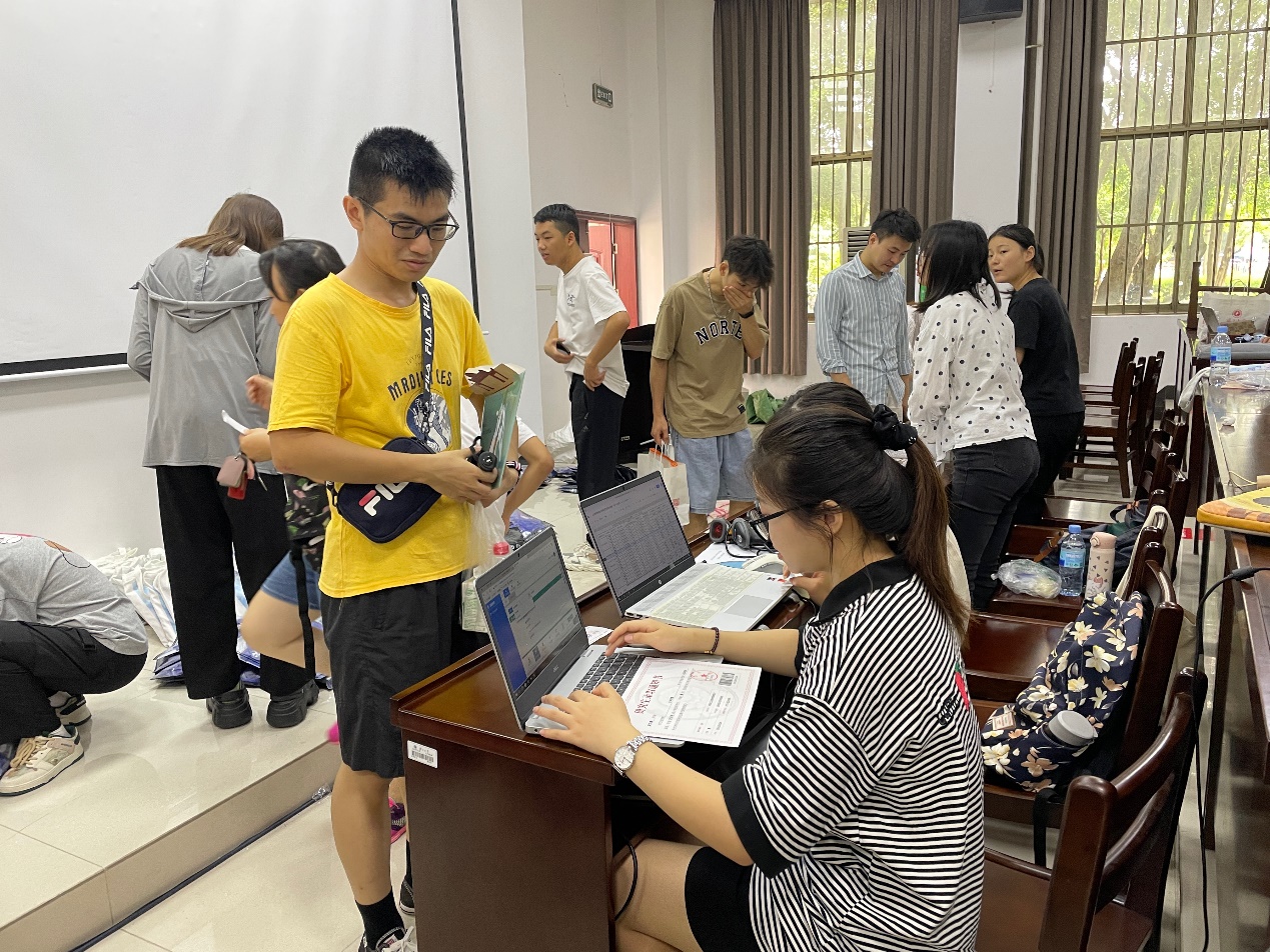 在学院注册现场,通过志愿者的帮助,同学们顺利完成了报到手续。