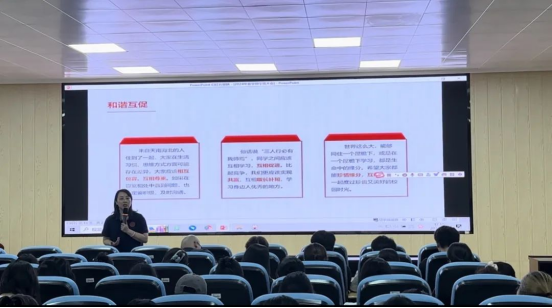 黄文静结合2023级本科生秋季学期微积分考试通过人数以及入团、入党申请书的递交情况,她强调,解决学习与生活中疑惑的关键,是多与任课老师及辅导员交流;提高自身政治站位的关键,是积极向党组织靠拢,培养进取的精神。她鼓励全体2023级本科学生与周围同学包容尊重、互助成长、减少矛盾、增进友谊,在保证安全的前提下在假期可以积极参与校内外实践活动,注意防诈防骗。在实践中,享受过程所带来的锻炼与成长,增加社交的广度、频率,兼顾好学习与工作,建立更强大的内心。