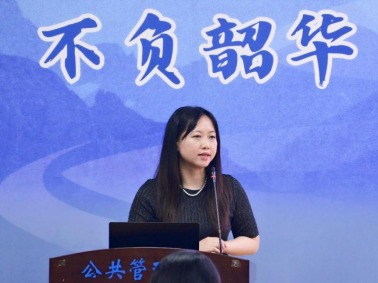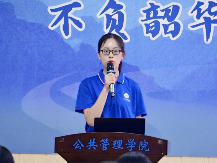 随后,2025级新生代表杨馨闻发言,讲述了自己的工作经历、考研感悟和读研规划。她表示,在作为选调生参与驻村工作的过程中,她逐渐发现自己在公共管理领域的理论储备跟不上服务群众的实践需求,从此下定了考取公共管理研究生的决心;以此鼓励同学们不忘初心,坚持把理论知识运用到服务人民的工作实践中。在读研规划上,她勉励自己和同学们要多读公共管理专著和论文,多参与调研项目和学科竞赛,锻炼知识运用技能;多关注政策文件,多去走访调研了解民生需求,为基层治理优化、服务民生福祉贡献自己的力量。