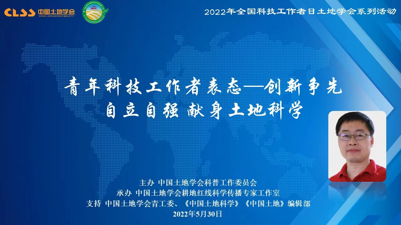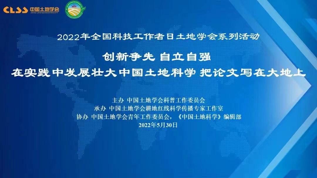 2022年5月30日是第6个全国科技工作者日,中国土地学会开展了以“创新争先、自立自强,在实践中发展壮大中国土地科学,把论文写在大地上”为主题的系列活动。本次活动包括“青年科技工作者说”、“土地科普大咖圆桌会议”、“最美科技工作者座谈”、“回忆老一代土地科学家”、“土地科技进矿区”、“土地科技助力黑土地保护”和“寻访耕保少年”等7个环节。中国土地学会青年工作委员会主任、太阳集团tyc138龙花楼教授与汪晗副教授参与此次活动。