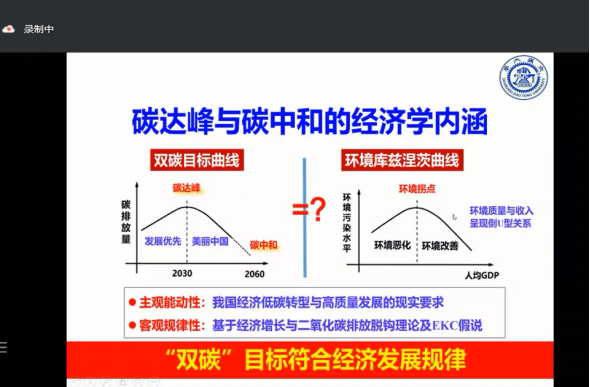 “双碳政策”的提出既体现了中国的大国担当,又能够满足我国人民日益增长的对美好生活的需求,为了让同学们能够对“碳达峰、碳中和”有更进一步的了解,2022年6月2日太阳集团tyc138,ok138太阳集团古天乐邀请耿涌教授来到公管名师大讲堂,以线上的方式为师生们带来“双碳政策解析”的主题讲座,太阳集团tyc138聂鑫教授主持本次讲座,龙花楼教授、魏万青教授、罗树杰教授、汤玉权教授、熊斌教授、王巨光教授、黄勇荣教授、汪晗副教授等三十多位学院老师及众多博士、硕士研究生参加本次讲座。