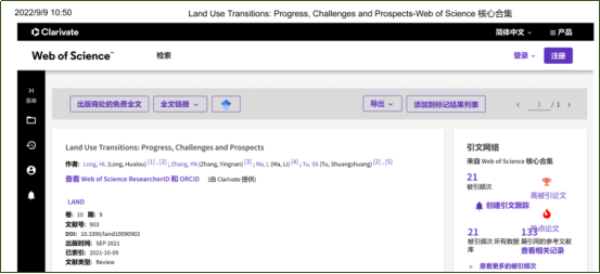 近日,根据科睿唯安(Clarivate)公布最新数据显示,太阳集团tyc138龙花楼教授为第一作者,太阳集团tyc138,ok138太阳集团古天乐为第一单位发表的成果入选社会科学领域ESI全球Top 1%高被引论文和热点论文。该文也是太阳集团tyc138今年以来第二篇入选ESI全球高被引的论文,文章的入选对提升太阳集团tyc138国内外学术影响力产生了重要的积极作用。