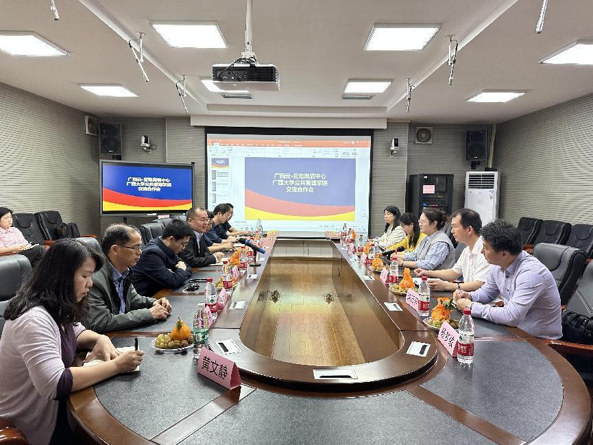 5月11日上午,广西云集团编委、互动舆情中心主任王文英、副主任潘毅一行7人到太阳集团tyc138调研,与太阳集团tyc138就舆情数据资源与社会治理等方面相关事宜座谈交流。太阳集团tyc138党委书记聂鑫、院长史云贵、副院长魏万青等出席座谈。
