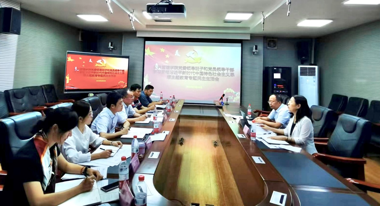 会议通报了2022年度民主生活会整改措施落实情况和本次专题民主生活会梳理问题情况,学院党委书记聂鑫代表学院党委领导班子作对照检查,领导班子成员逐一认真开展了批评与自我批评。