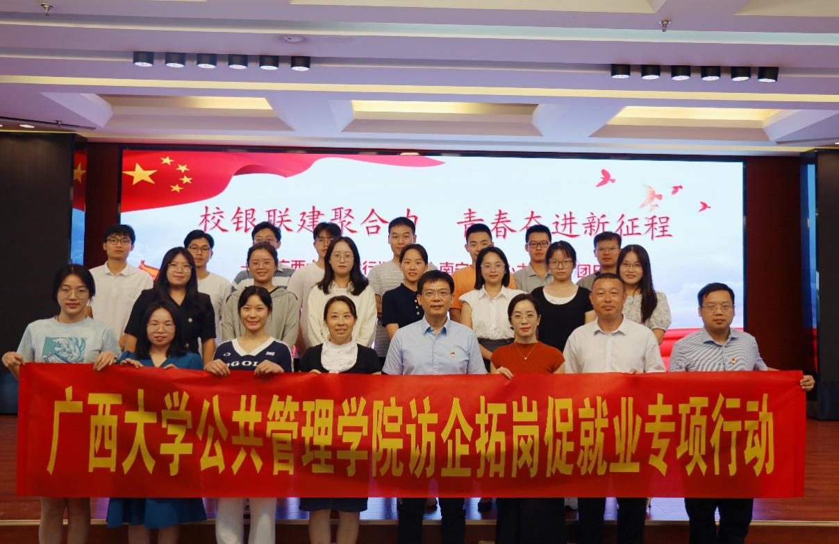 为贯彻“稳就业”“促就业”决策部署,扎实做好2024届毕业生就业服务工作,拓宽就业渠道,10月8日下午,学院党委副书记庞惠带队赴中国建设银行远程智能中心南宁分中心开展访企拓岗促就业专项行动。