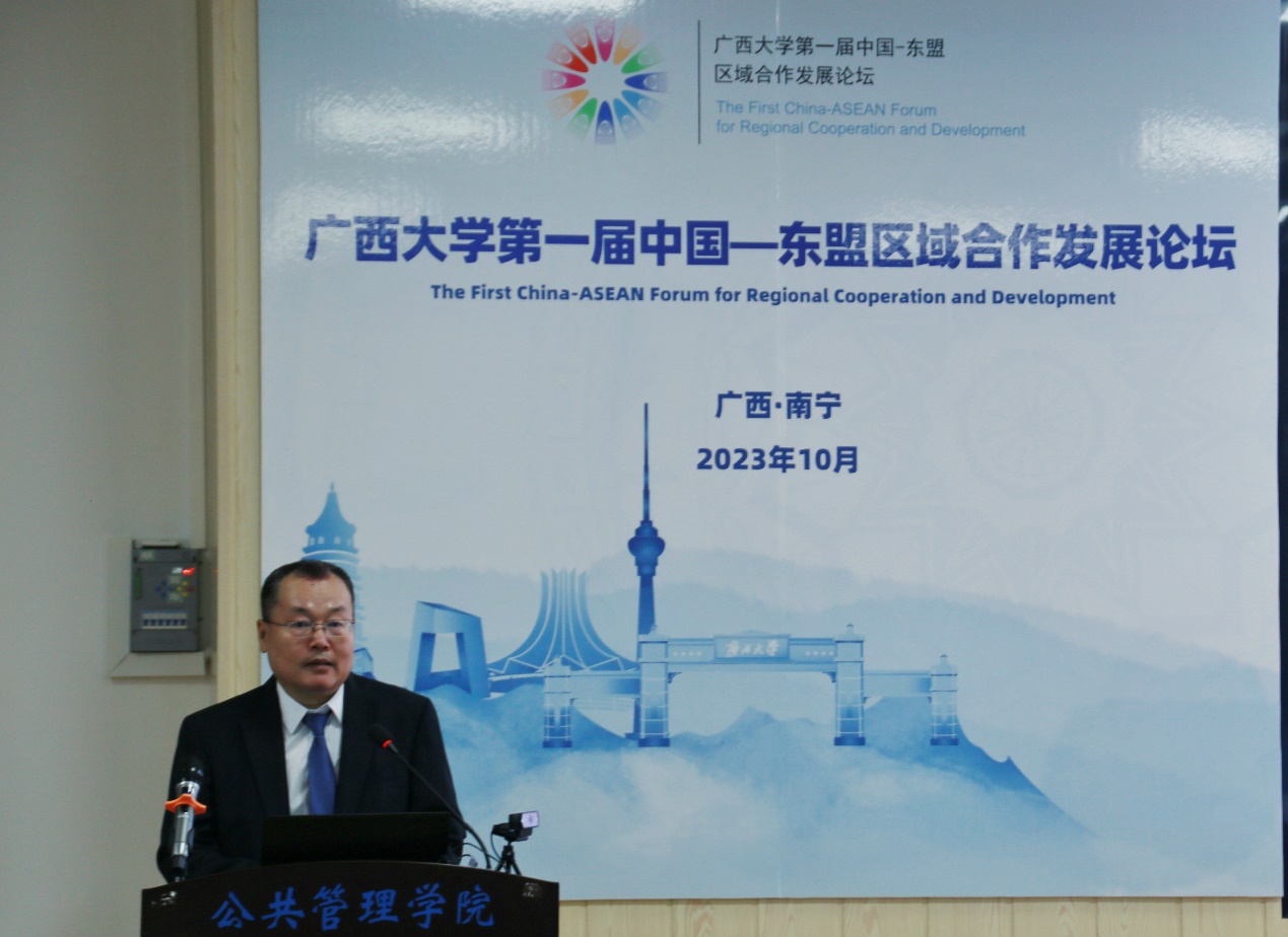 10月14日,由广西大学主办的第一届中国-东盟区域合作发展论坛在广西大学举办,论坛主题为“中国-东盟:为了更好的未来”。中国-东盟绿色发展与区域治理分论坛在太阳集团tyc138203会议室举行,来自泰国、菲律宾等国内外二十余位专家学者与太阳集团tyc138师生共聚一堂,就绿色发展、区域治理等热点问题进行交流讨论。