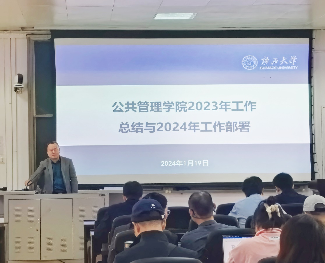 学院院长史云贵代表学院领导班子作2023年学院工作总结和2024年学院工作部署。史云贵院长从学科建设、人才引进、教学科研等方面全面总结了学院2023年取得的成绩。他表示:过去一年,在学校党委行政的关心和领导下,通过全体教职员工的辛勤付出,学院的各项事业取得了长足进步。新的一年,学院将以学科建设为龙头,进一步完善院系管理体系和办学环境,加大人才内培外引的力度,为实现学院内涵式高质量发展而不懈奋斗!