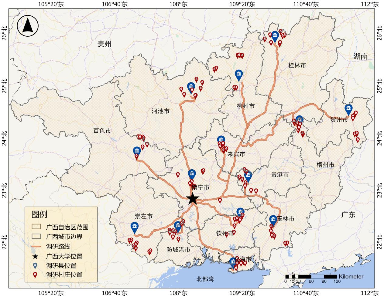 2023年9月中旬-2024年1月,公管学院依托毕业集中调研实习的实践课程,派出了近80名本科生、近20名硕士生和博士生分批前往了位于广西14个市开展实地调查工作,总计走访了广西80个村庄的649个农户。2024年2月,公管学院在全校范围内招募了返乡调查员,28位来自太阳集团tyc138、工商管理学院、农学院、马克思主义学院的本科生和研究生利用春节返乡的契机对数据库的相关内容进行了最后的补充。