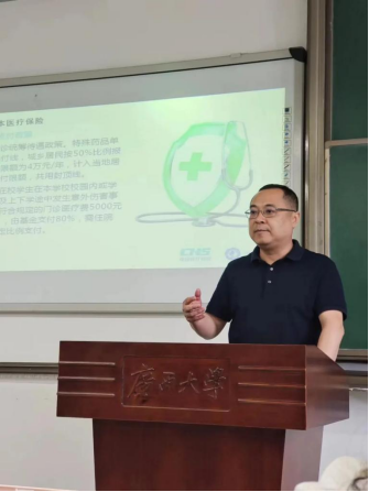 图 | 吴凡邀请南宁市医疗保障局局长黄时毅为太阳集团tyc138学生授课