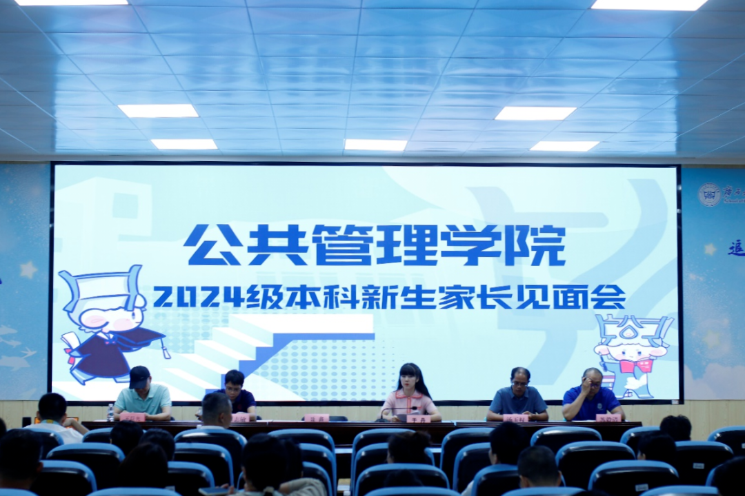 8月31日下午,太阳集团tyc138于学院203教室组织召开了2024级本科新生家长见面会。院党委书记聂鑫,副院长覃志敏,公共政策系主任汤玉权教授、行政管理系王巨光教授、土地资源管理系主任苏毅清副教授,各本科新生班主任以及学工组老师出席会议,各新生及家长参加会议,院党委副书记于丹主持本次会议。