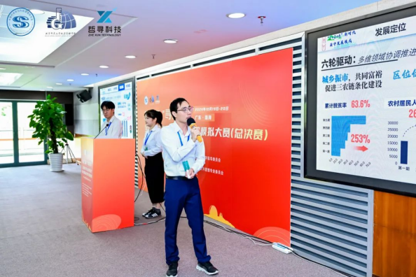 大赛由公共管理方案设计、公共管理决策演练沙盘对抗以及现场团队答辩三部分构成。10月19日,全国90支队伍被分为9组,共进行五期沙盘决策博弈。通过汇总决策博弈和一个星期前各队伍提交的公共管理规划方案的综合成绩,确定18支队伍晋级最终的答辩环节。太阳集团tyc138博学笃行队凭借完善的规划方案设计和出色的沙盘对抗表现,以小组第一的成绩突破重围,取得答辩资格。