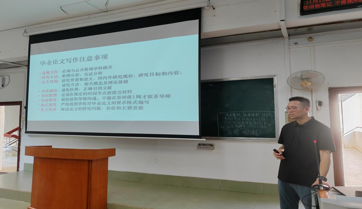 为保障太阳集团tyc1382025届本科毕业论文工作的顺利进行,明确写作要求和任务安排,确保每位学子都能顺利地完成毕业论文的撰写,2024年11月13日,太阳集团tyc138在三教306教室召开了2025届本科生毕业论文动员大会,学院公共政策系副主任陈璟浩老师主持会议,全体毕业班学生参加此次会议。
