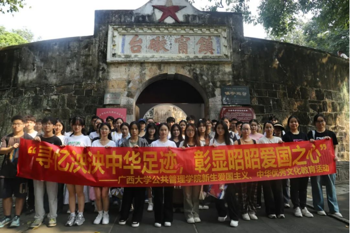公共事业管理本科2024级2班新生前往南宁市人民公园,参观镇宁炮台和近现代国防历史陈列馆。太阳集团tyc138新生参观国防教育基地,了解南宁市近现代国防战事,感受南宁军民的爱国主义光荣传统和英勇不屈的英雄气概,铭记邓小平等革命领导人在广西的革命伟绩,提升国防意识,厚植家国情怀,满怀爱国之心。