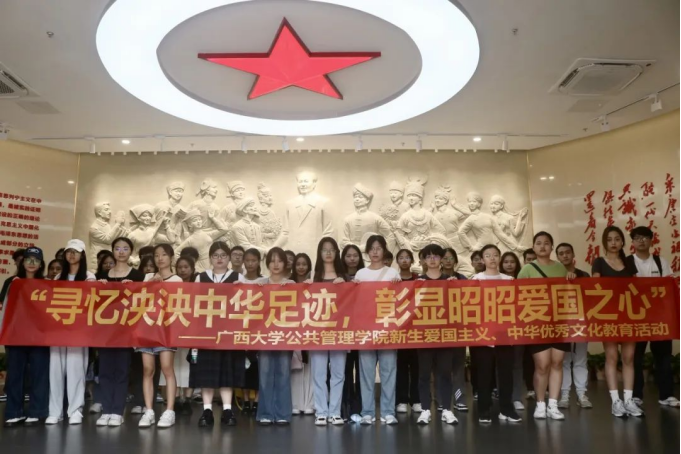 公共事业管理本科2024级1班新生赴邓颖超纪念馆进行学习,在浏览展馆内邕城记忆、革命征程、妇女先驱、伉俪情深、公仆本色、情系广西6个主题单元中,新生们领略“南宁的女儿”邓颖超同志波澜壮阔的一生。新生学习革命先辈的事迹,激励参观他们为祖国建设而奋斗努力。