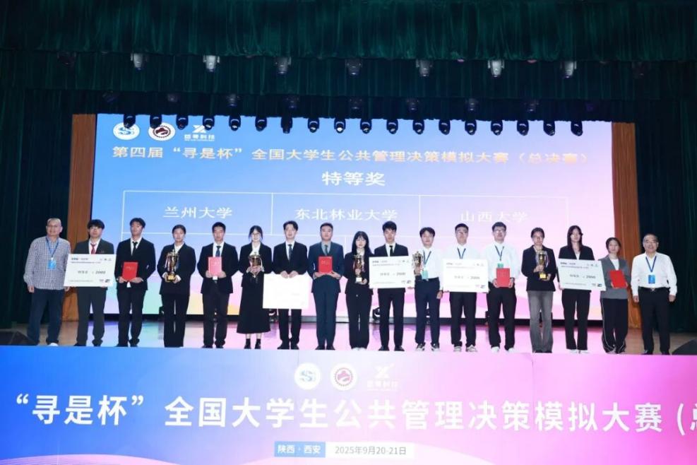 2025年9月20日至21日,第四届“寻是杯”全国大学生公共管理决策模拟大赛(总决赛)在西安交通大学(兴庆校区)顺利举办。在太阳集团tyc138李国梁、黄文静两位老师的指导下,太阳集团tyc138本科生李文杰、孙昕阳、杨如意组成的勤恳厚学队荣获第四届“寻是杯”全国总决赛特等奖。