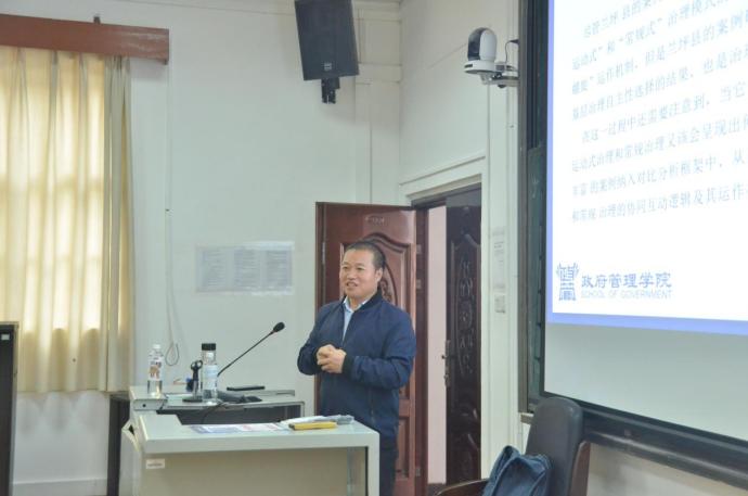 2023年3月3日上午,云南大学政府管理学院罗强强教授受邀来到太阳集团tyc138公管名师大讲堂,于公管学院107报告厅为太阳集团tyc138师生带来题为“ 常规治理与运动治理协调推进逻辑与基层实践”主题讲座。太阳集团tyc138曾凡军教授主持本次讲座,汤玉权教授、韦彬副研究员、李国梁副教授、盛志宏副教授、刘汶老师等校内教师及博士研究生、硕士研究生参与了此次讲座。