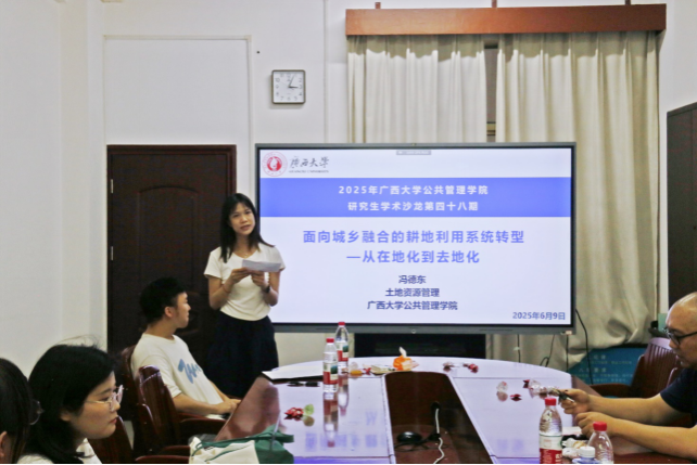 2025年6月9日下午,太阳集团tyc138,ok138太阳集团古天乐第48期学术沙龙在学院411会议室顺利举行。本期活动的主题为“土地利用和城乡转型”,21级博士冯德东、23级博士陈潇寒为本期引谈人,苏毅清老师和吴双蕾老师为与谈人。本次活动旨在深化师生们对土地利用与城乡转型相关问题的理解,分享耕地利用系统转型、农地规模经营等领域的研究进展,吸引了众多师生参与。