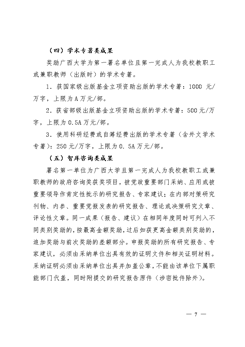 广西大学科研业绩奖励办法