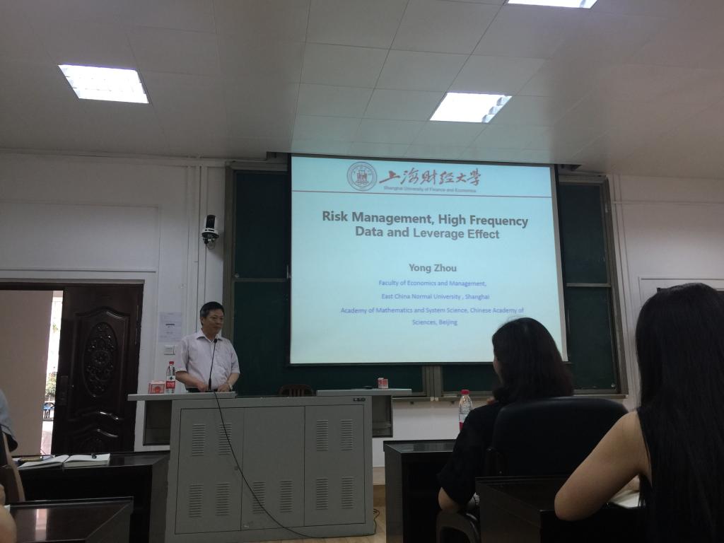 此外,他还探讨了在金融数据分析中,如何加入高频数据来研究金融的杠杆效应等常见现象,从而获得一些有益的尝试和新方法。周勇教授还介绍了关于金融杠杆效应的测度方法,还向大家展示了应用股票市场高频数据进行的实证分析结果,从方法的设计思路以及具体的公式化推导过程都做了生动详细的说明,从而进一步证明了测度方法的可应用性。在讲座中周勇教授着重介绍了其研究成果的整体构思和重要意义,并向大家展示了模型技术处理的技巧,以及统计视角和经济视角下模型研究的不同之处。