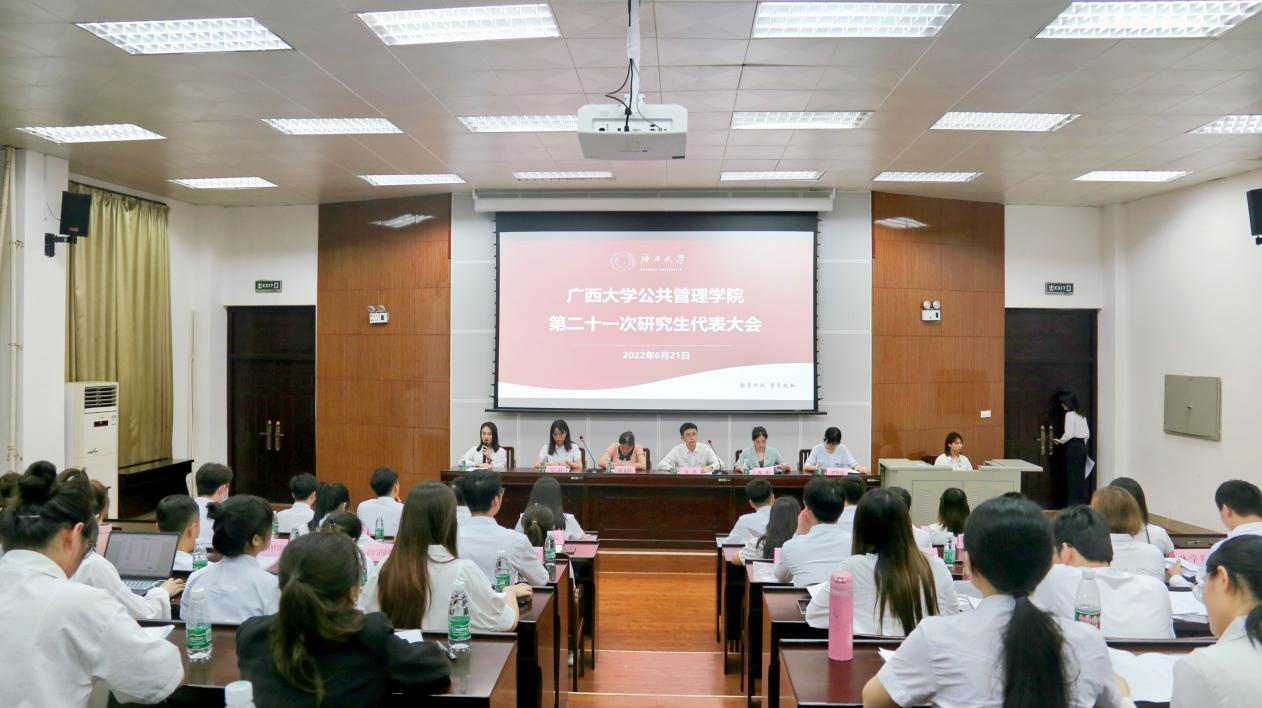 在隆重庆祝中国共产主义青年团成立100周年、喜迎党的二十大胜利召开的热烈氛围中,6月21日,太阳集团tyc138,ok138太阳集团古天乐第二十一次研究生代表大会在学院106教室顺利召开。太阳集团tyc138,ok138太阳集团古天乐党委书记聂鑫老师,党委副书记庞惠老师,团委书记黄文静老师,团委副书记刘佩瑶老师,校研究生会主席团代表邹阳同学,兄弟学院研究生会主席团代表,太阳集团tyc138第二十届研究生会主席团以及学院各研究生班级学生代表出席本次会议。