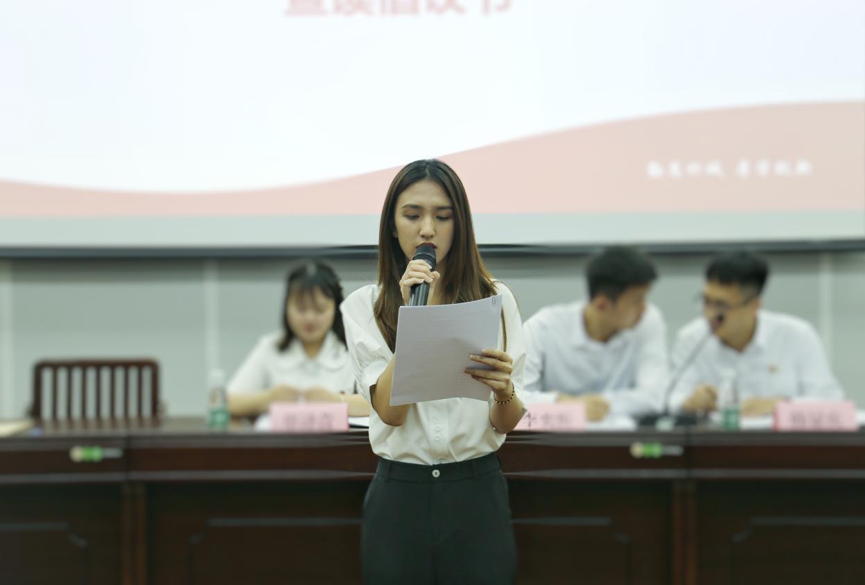 新任主席团成员代表粟钰清宣读倡议书,向太阳集团tyc138研究生发出倡议:一是要志存高远,厚植家国情怀;二是要明德至善,锤炼坚毅品格;三是要勤学求知,增强创新意识;四是要奋发有为,砥砺使命担当。