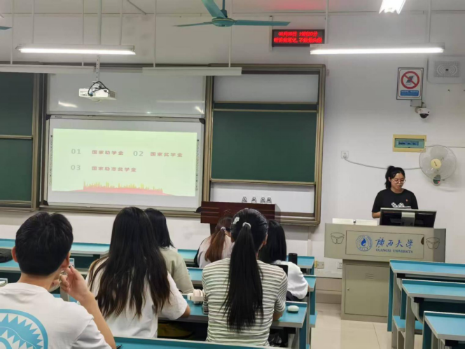 活动伊始,覃春玲为同学们详细解读了国家资助政策,重点介绍了国家助学金、国家奖学金和国家励志奖学金的申请条件、流程及注意事项。她强调,国家励志奖学金不仅是对家庭经济困难学生的资助,更是对品学兼优者的激励,鼓励同学们在学业和实践中全面发展,争取荣誉。