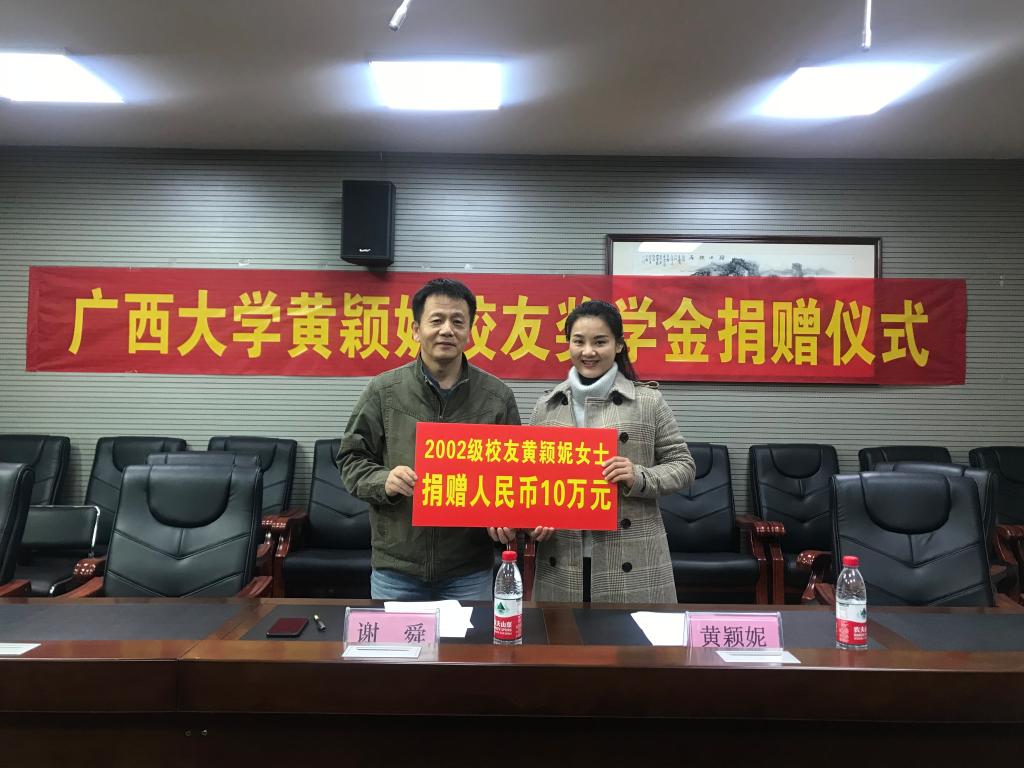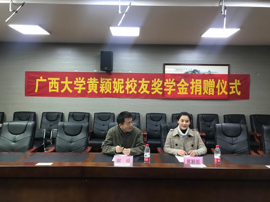 广西大学“黄颖妮校友奖学金”捐赠仪式在太阳集团tyc138举行